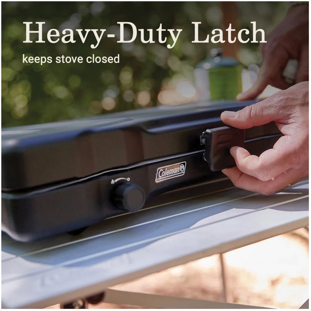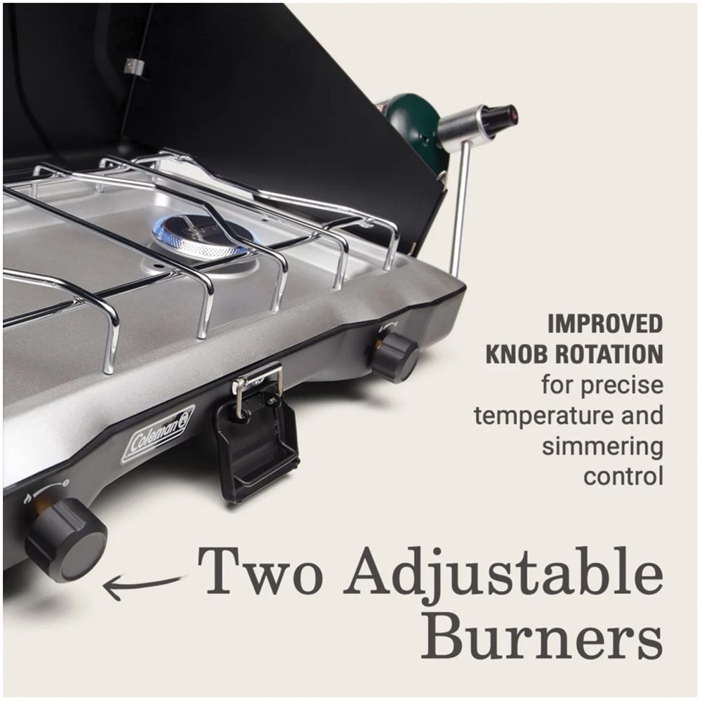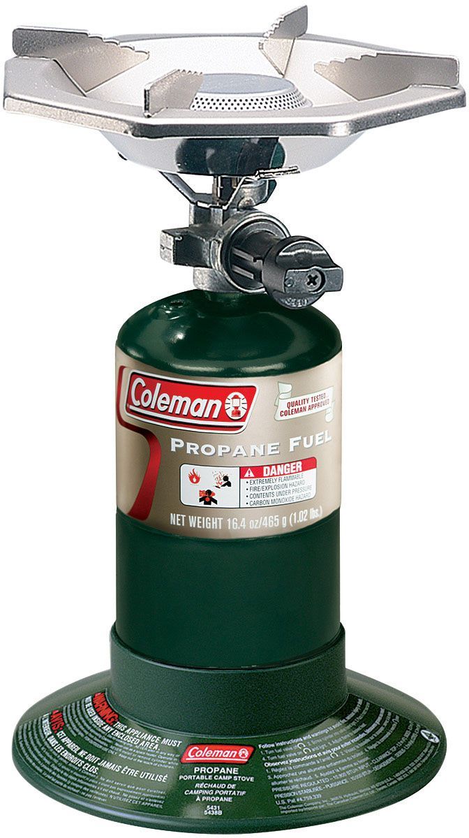 The Coleman One-burner Propane Stove is an easy-to-use portable stove that should meet almost any camp cooking need. The PerfectFlow regulator provides consistent cooking performance by producing a steady fuel stream, even in cold weather, high altitudes, or when fuel is low. Equipped with one 10,000 BTU burner, this fully adjustable stove will last for 2.2 hours on high or up to 9 hours on low.