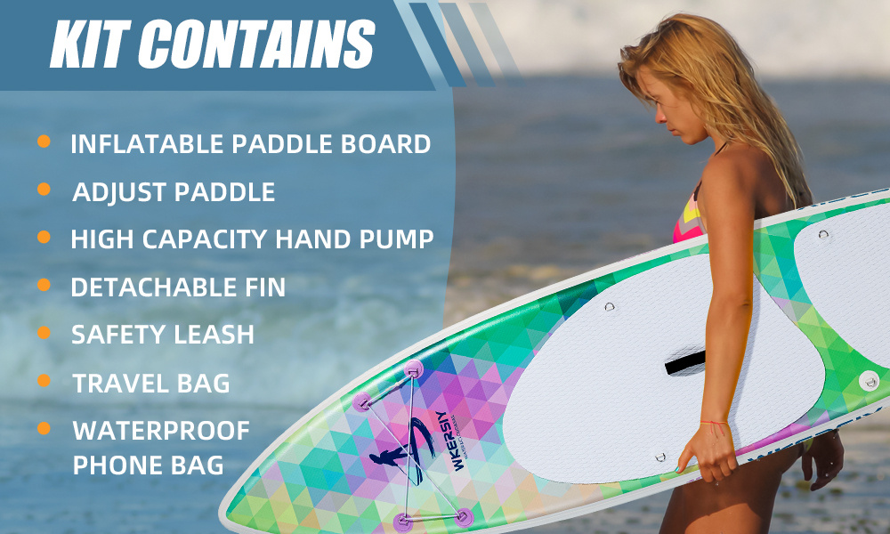 [ ] - Wkersiy sup offers you a complete stand-up paddle board with a big waterproof travel bag, safety leash, Aluminum adjustable paddle. Once you arrive at your destination, you can quickly inflate your board with the inflatable stand-up paddle board pump. The method of installing fins is simple: slide in and clip, no tool needed.