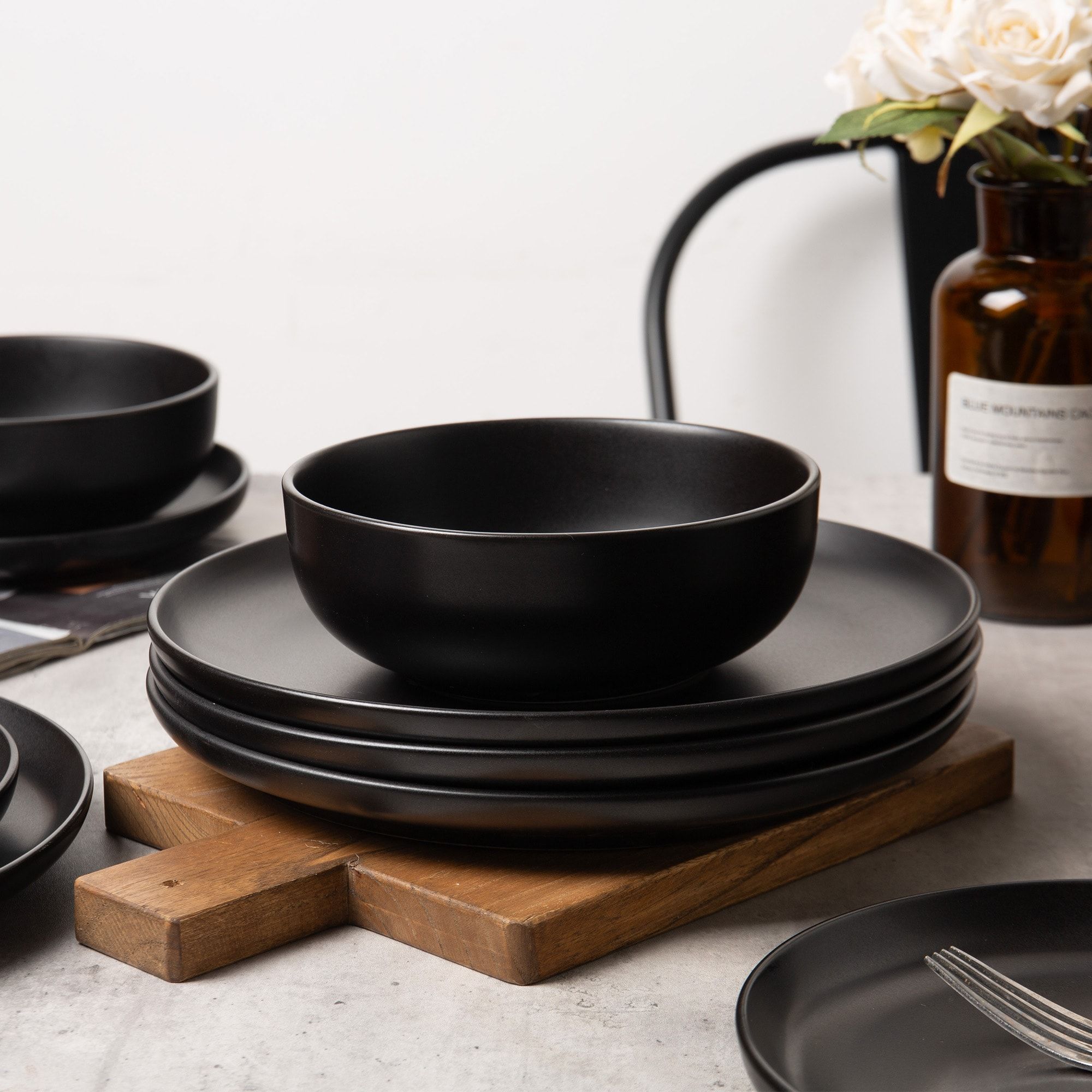 2. "[Complete 12pc Service for 4]": "Includes 4 dinner plates (10\"), 4 salad plates (7.5\"), and 4 deep cereal bowls (5.9\") - perfect for family meals or entertaining guests."