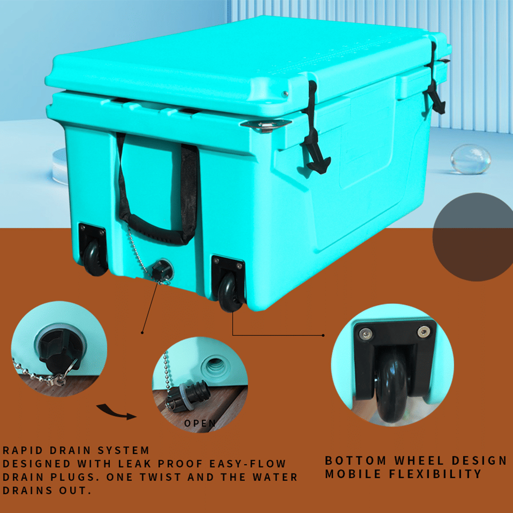 Details: Hot Selling Blue color 65QT Outdoor cooler fish ice chest Box 2022 Popular Camping Cooler Box