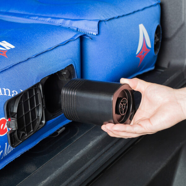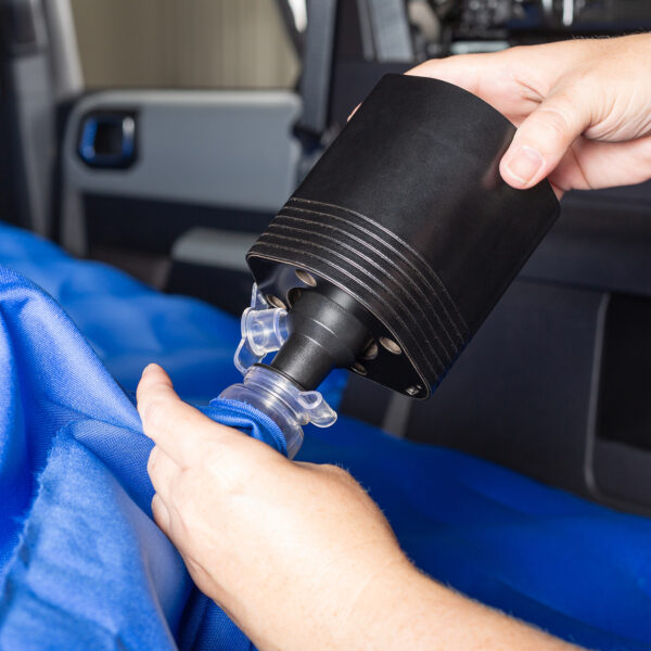 Our NEW 2 pc Ford Bronco only AirBedz Air Mattress by Pittman Outdoors is designed to transform your 4 door Bronco into the ultimate camping companion. Our patent-pending offset design ensures a level sleeping area in the back of your vehicle, providing unparalleled comfort. Featuring a built-in rechargeable/ detachable air pump, inflation and deflation is a breeze. With a 60/40 split design, the mattress can easily be unzipped to use just one part, leaving room on the opposite side for storage of your camping gear. The extra-long design, measuring 6′ 5″ and the included floor fillers make it perfect for taller individuals. Crafted from heavy-duty, RF welded, premium oxford fabric, this mattress is both durable and easy to clean, resisting punctures for long-lasting use. It comes with a rechargeable/ detachable air pump, USB-C charger cord and oversized carry bag, offering convenience and portability. Comfortably sleeping one or two people, the AirBedz Air Mattress inflates and deflates quickly, ensuring a restful night’s sleep in your Bronco is always just an inflate away.