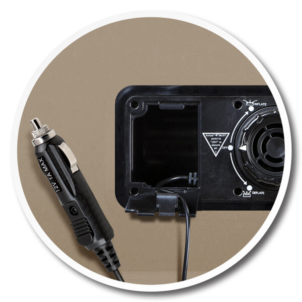 • Built in DC Air Pump with 19′ Cord for Inflation/ Deflation