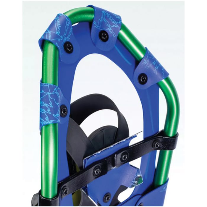 Designed for young enthusiasts, age 8 to 12, the Youth Snowshoes were designed with a binding that's easy to use, sized to fit fast-growing adventurers, and made with durable materials that stand up to a kid's abuse. Simple and intuitive, the EVA tongue of the new Grom binding hugs the foot, providing warmth, eliminating pressure points and reducing the hassle of straps. The fixed toe cord of the Youth Series keeps the snowshoe underfoot and allows easier maneuvering for the energetic kids. Proprietary V-frames, solid tempered steel toe and heel traction offer the performance your kids need to keep smiling and hiking all day long.