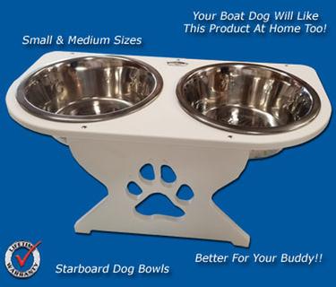 Don't forget about your buddy! Whether in the boat or back at home, these elevated dog dishes are better for your dog and attractive enough for the house or boat. FDA approved King Starboard means if your buddy chews on it no harm will come. Stainless bowls with embossed dog bones on the side mean both parts of the product are dishwasher safe.
