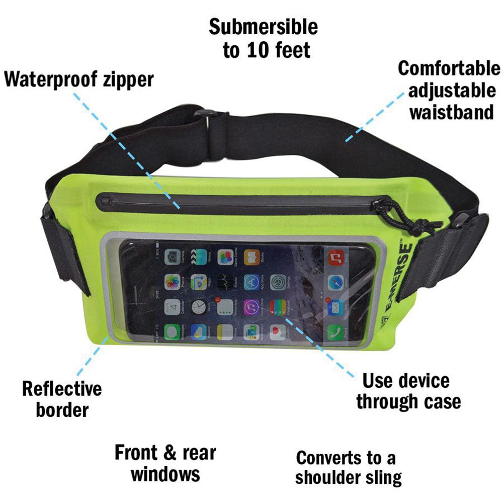 Our new E-Merse™ NeoBelt is a waterproof action belt built for all your needs. A gas-tight zipper keeps cell phones safe and protected from water, dust, and sand. Front and rear side windows allow users to operate a phone’s camera right through the case. Removable elastic waist belts allow the case to convert to a shoulder sling pack, with the included foam core shoulder sling. No other waist belt case can offer the function and versatility of the NeoBelt.