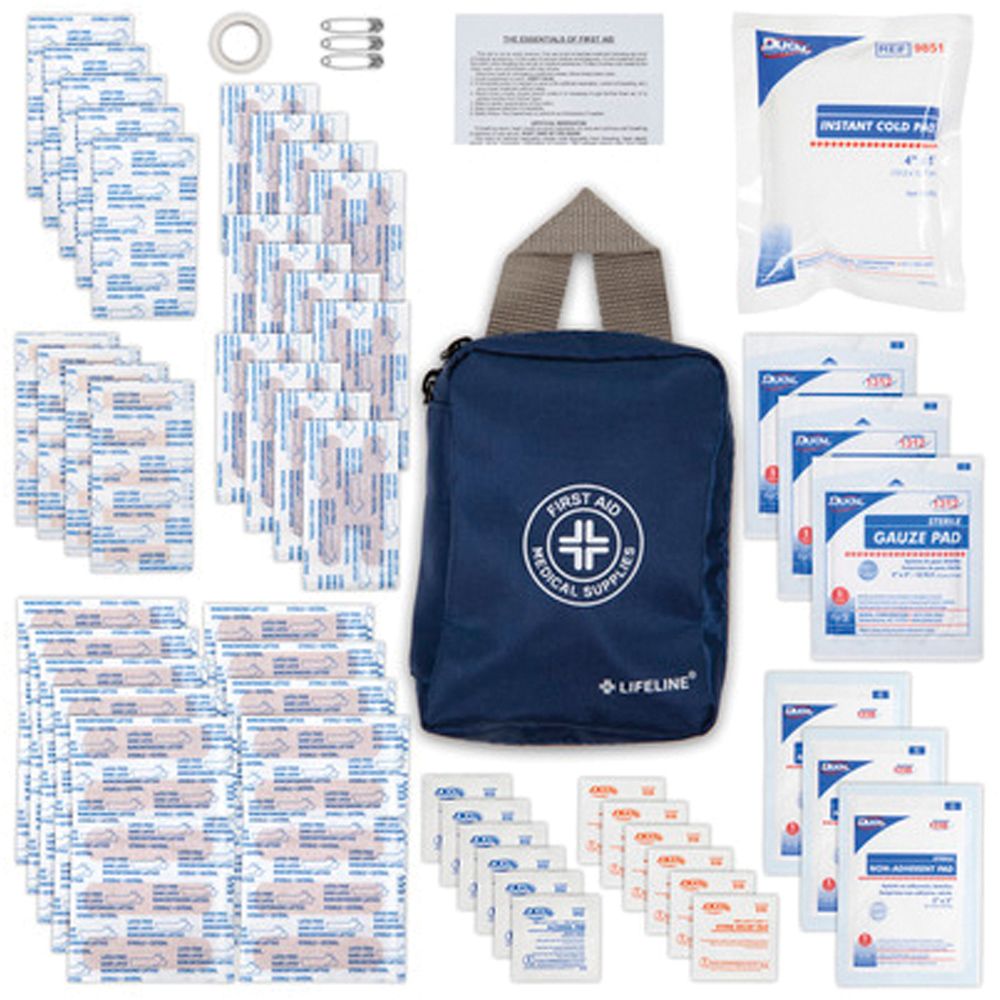 Compact and can easily be stored in a backpack, vehicle, or office desk. Comes with components of essential first aid supplies, including different types of bandages, and wound care essentials. The soft case is designed with a zipper closure, that conveniently keeps the supplies secure, and includes a sturdy handle.