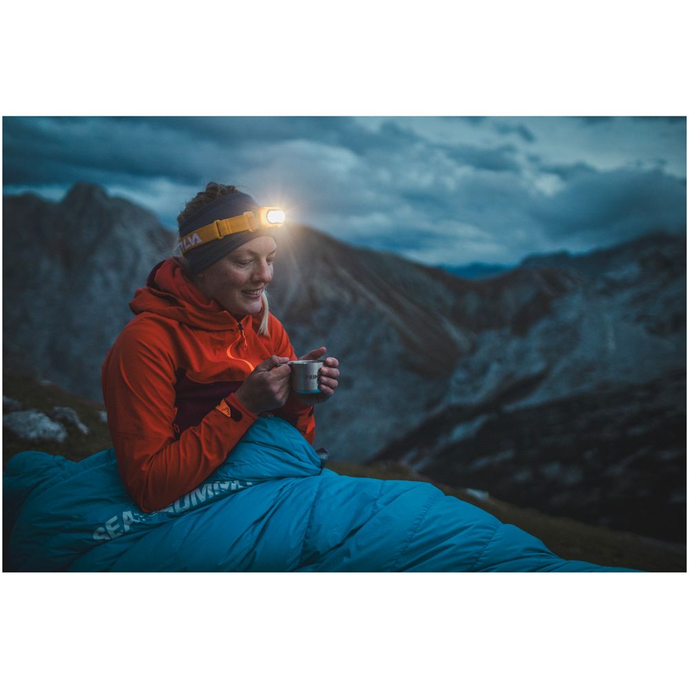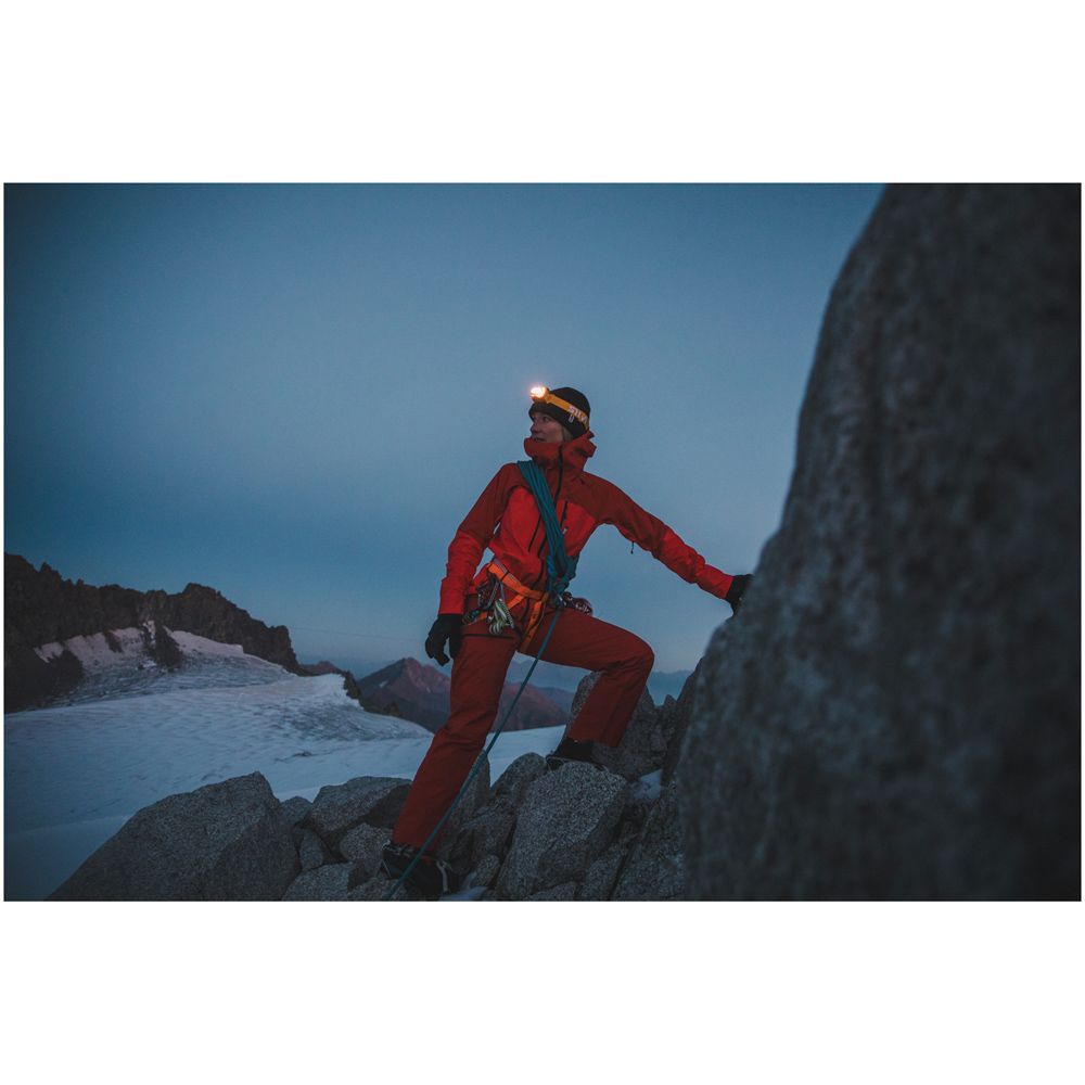 Explore 5 is a 700 lumen headlamp for all conditions adventures. It is dust tight and fully waterproof  IP68. It also includes red and orange led for close range readings in very dark conditions. Explore has a built in 2.0Ah Li-Ion battery that is charged with USB-C and the remaining burn time is read through the 4 step battery indicator. Includes a helmet mount