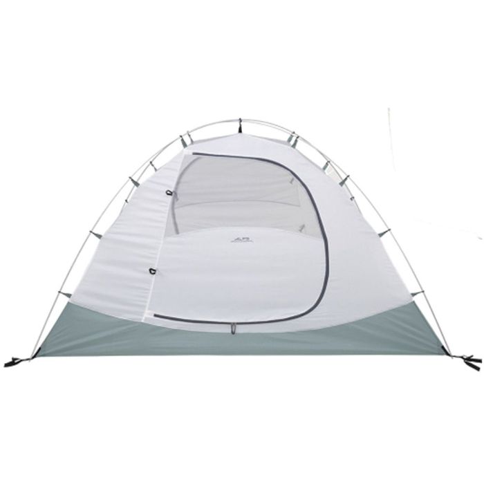 A free-standing aluminum two-pole design allows for quick and easy setup once at the campsite. A dual-door construction permits entry from either side. The weatherproof rainfly with two vestibules attaches with buckles to the corners for maximum adjustability and protection from the elements for users and their gear. Half mesh walls allow for ample ventilation while inside mesh pockets and gear loft provide storage for small personal items.