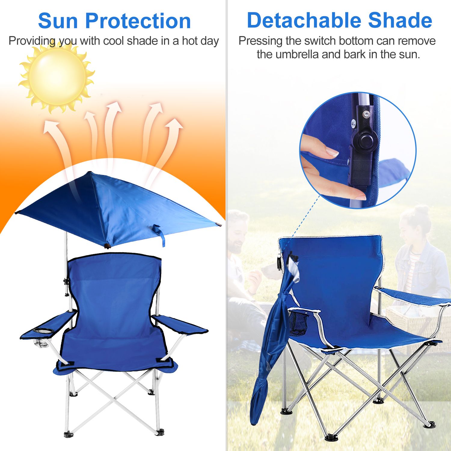 *Detachable & Adjustable Umbrella*:The oversized umbrella’s angle can be adjusted 360 degrees for optimal sun protection. If you want to bask in the sun,the umbrella can be lowered or detached.