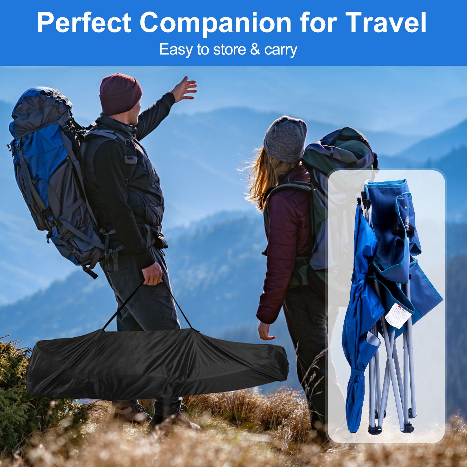 3.The Camping chair folds down to 6x4x35.4in and can be packed into a carry bag that come with it.