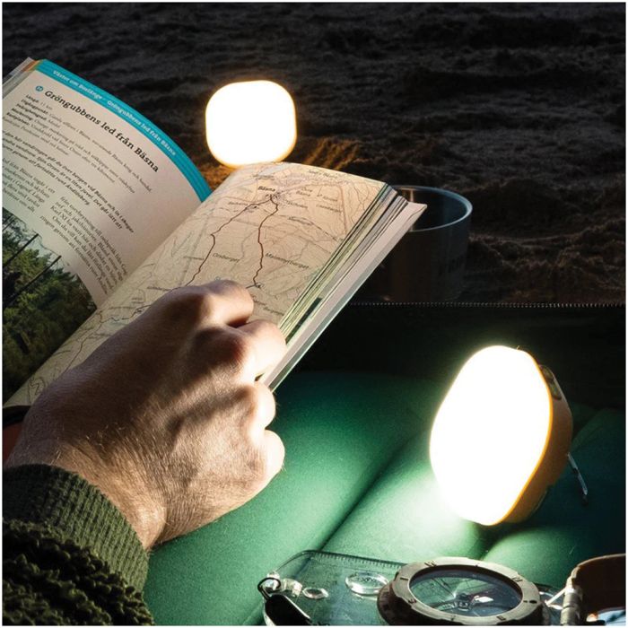 Enhance your nights out with the all-new lantern Glow Recharge. In a pocket-sized format, Glow Recharge gives you ideal illumination for campsites, table-tops and other outdoor situation. Also suitable in your cabin or as a back-up light. With dual light modes you can easily switch between white working light and cosy campfire light, both serving you with an 360° ambient light for every occasion. Glow Recharge is made of recycled materials and the integrated battery makes for quick and easy recharging on the go or at home, with integrated USB-C charge port.