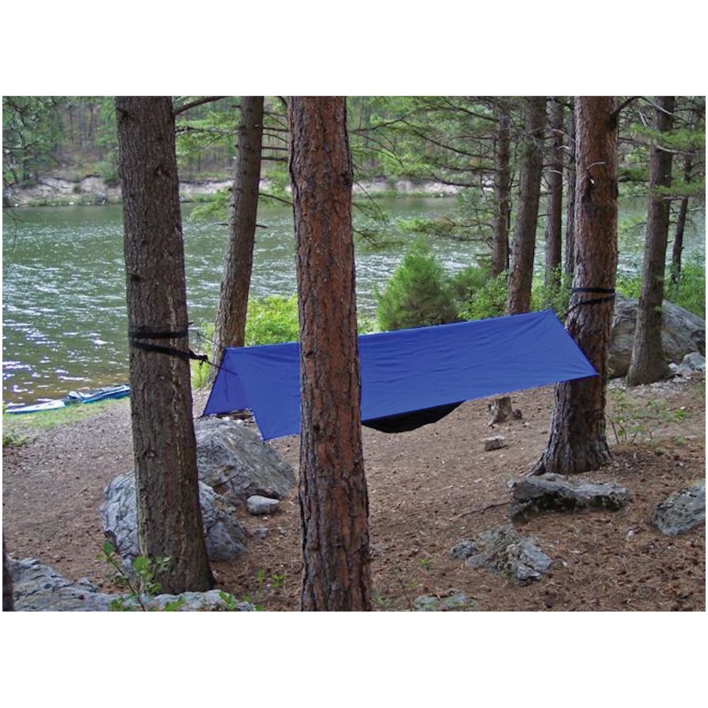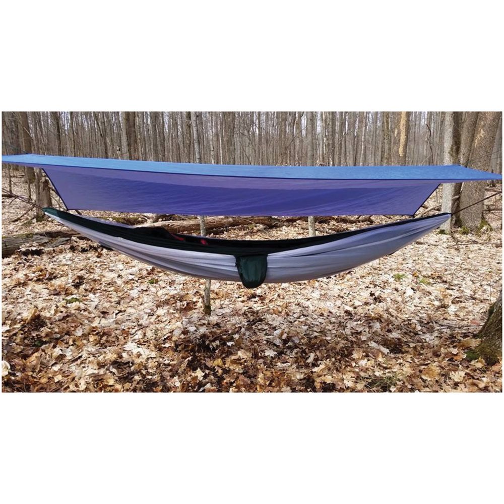 Hammock Bliss All Purpose Shelter is a portable multifunctional waterproof hammock shelter optimized for use with any Hammock Bliss hammock. The Shelter is truly multi purpose - stay dry in your hammock in rainy conditions, block out the sun or protect your gear from the elements. Use the blue side of the shelter against the rain and the white side of the shelter to reflect the sun. The All Purpose Shelter comes complete with 100 inches of cord at each of the 6 attachment points which gives you multiple hanging options.