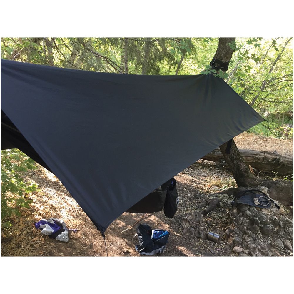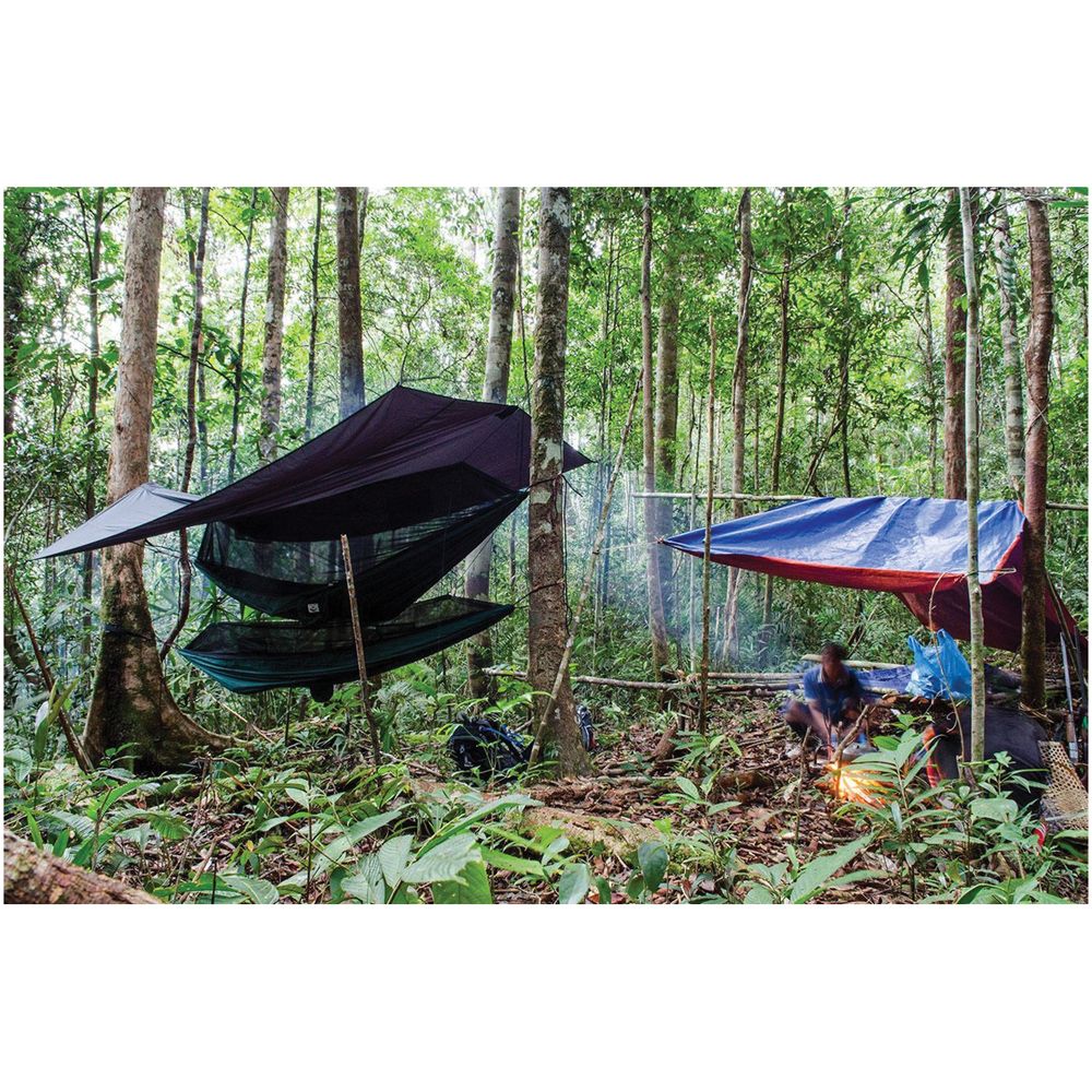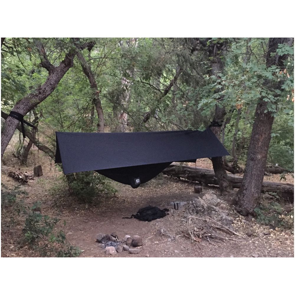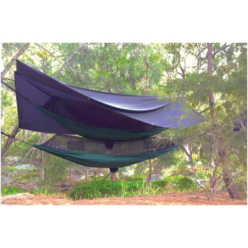 Always stay high and dry under the Hammock Bliss XL Rain Fly. This extra large & light weight hammock shelter is made from a waterproof and tear resistant rip-stop nylon material. The extra large width allows you to use this fly as an emergency shelter, cooking shelter or as a rain shelter with up to two hammocks stacked below.