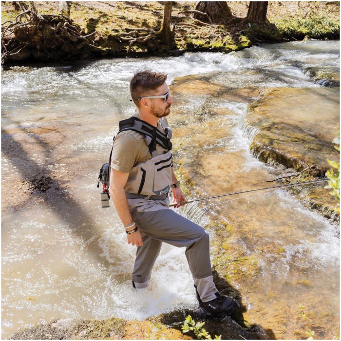 Frogg Toggs Men's Deep Current Stockingfoot Fishing Wader, your ultimate companion for conquering challenging waters. Crafted with a durable 3-layer DriPore Gen3 polyester fabric shell in the upper and 3-layer DriPore Gen3 nylon legs, this wader delivers superior waterproof protection for the most demanding fishing conditions. The Y-back adjustable suspenders with opposing buckles allow for a waist-high conversion, while the large internal see-thru pocket and external storage pocket with water-resistant zipper, fly patch, and daisy chain provide convenient storage options. With kangaroo-style fleece-lined handwarmer pockets and an adjustable elastic wading belt, this wader offers an athletic fit for maximum mobility and comfort during every cast. Tread into unmatched performance with low-profile seam construction and reinforced taped seams that make the Men's Deep Current Stockingfoot wader your go-to for a successful fishing expedition.