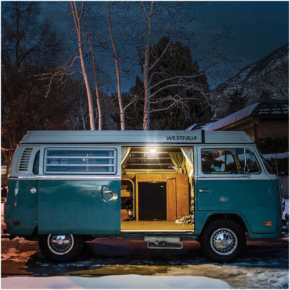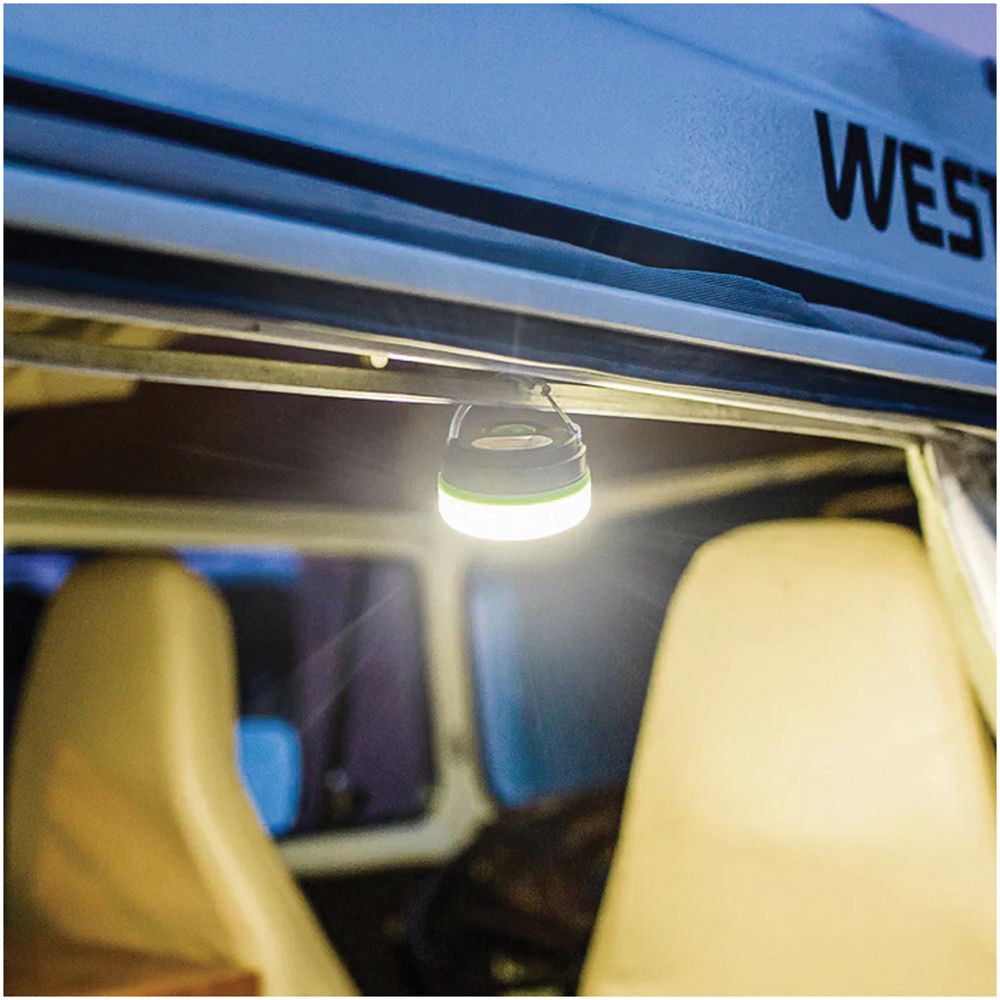 This Mini Magnetic Hanging Lantern casts a nice even light spread with a diffused lens that is easy on your eyes. This lantern is bright with 118 lumens and has 3 modes: high, medium, and low. It features a magnetic base so you can stick it to metal surfaces and also has a high-quality collapsible carabiner hook to securely hang. This durable lantern conveniently runs on 3 AAA batteries, which are included and have a max run time of 20 hours in low mode. The compact size and versatile staging options make it perfect to use onsite, for vehicle repairs, road trips, while camping, living in a van, or enjoying night activities at the park.