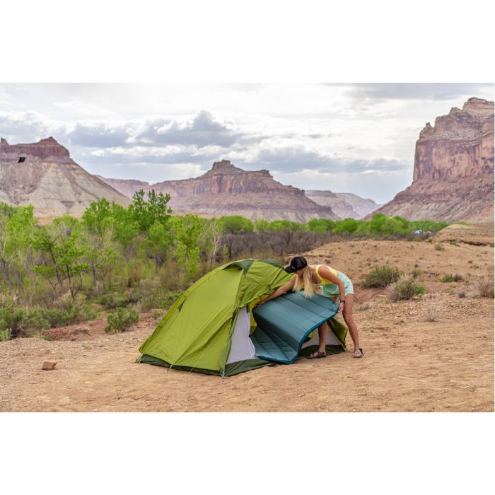 The Monarch Double Self-inflating Pad is the warmest, widest & thickest self-inflating pad from the Peregrine sleeping pad line. This pad will comfortably sleep two people with a length of 78” and width of 52" and features vertical sidewall construction that helps keep you stable on the pad. Count on our soft, stretch-knit top fabric for next-to-skin comfort when sleeping directly on the pad. Sized to fit most full-sized truck beds for Overlanding/car camping trips. Throw it in the back of your truck or van for your next plush adventure. (includes two velcro straps and compression carry bag)