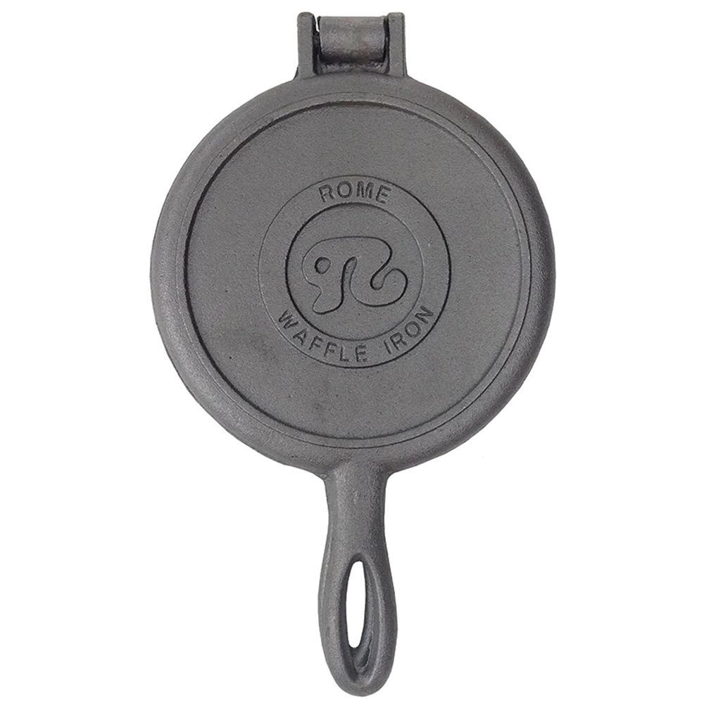 Rome's Old Fashioned cast iron waffle iron is based on the nostalgic style that grandma used to use. Designed for 2 burner camping stoves, bbq grills or on over the campfire. Not designed for stovetop unless stove has a trivet. 6.75" diameter cooking surface x 10" overall length (4" cast in handle). Full recipes and instructions included. Features our 10 year warranty. Another original design from Rome.