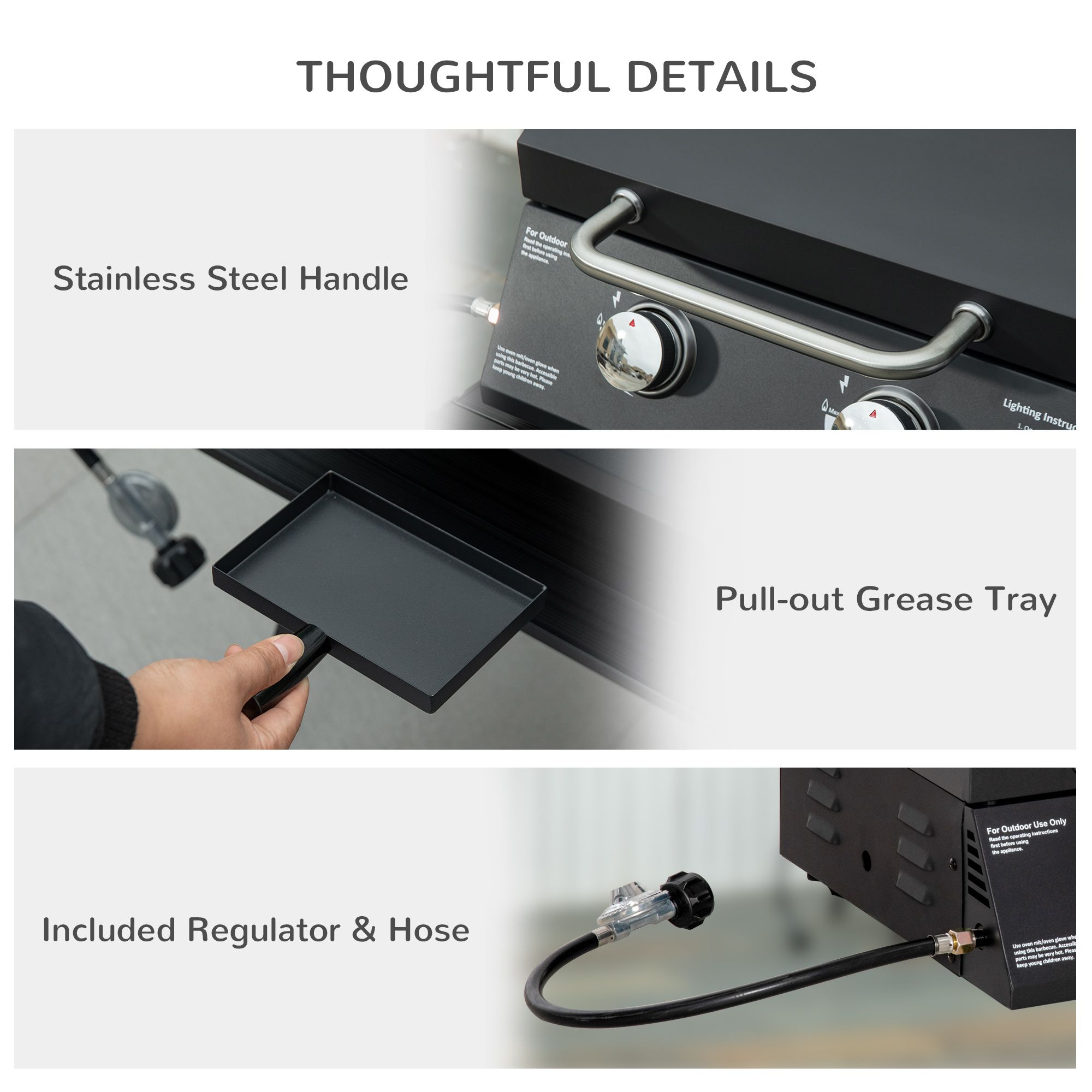 Details: Outsunny 2 Burner Propane Gas Grill Outdoor Portable Tabletop BBQ with Foldable Legs, Lid, Thermometer for Camping, Picnic, Backyard, Black