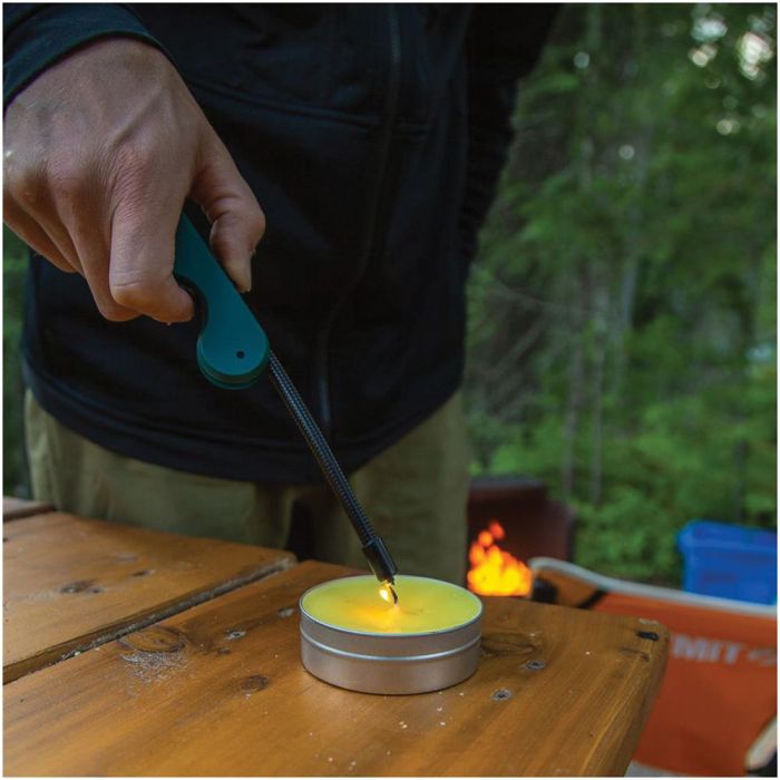 Ignite tinder, candles, or the camp stove easily with Coghlan's Plasma Flex Lighter. As a smarter alternative to disposable lighters, this USB-C rechargeable battery arc lighter is the only ignition tool you'll need going forward. It's safer than a conventional lighter as it is flameless and can be used in any direction as a result. The durable ceramic electrodes provide a windproof electric arc making this lighter effective even in windy conditions. The flexible shaft allows you to bend and adjust the lighter's position to easily ignite all kinds of stoves and burners while camping or in the backyard. The flexible gooseneck shaft tucks neatly into the rubberized handle when not in use, making it safe to transport.
