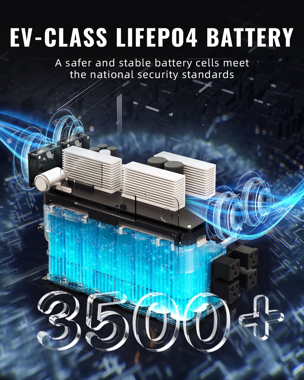 ⚡[Ev-Class LiFePO4 Battery]Portable power station uses LiFePO4 battery backup and has a 3500+ long life cycles; which is almost 10 years of normal use. Compared with traditional lead-acid batteries; it has better safety and stability; and is the world's UL certified battery.