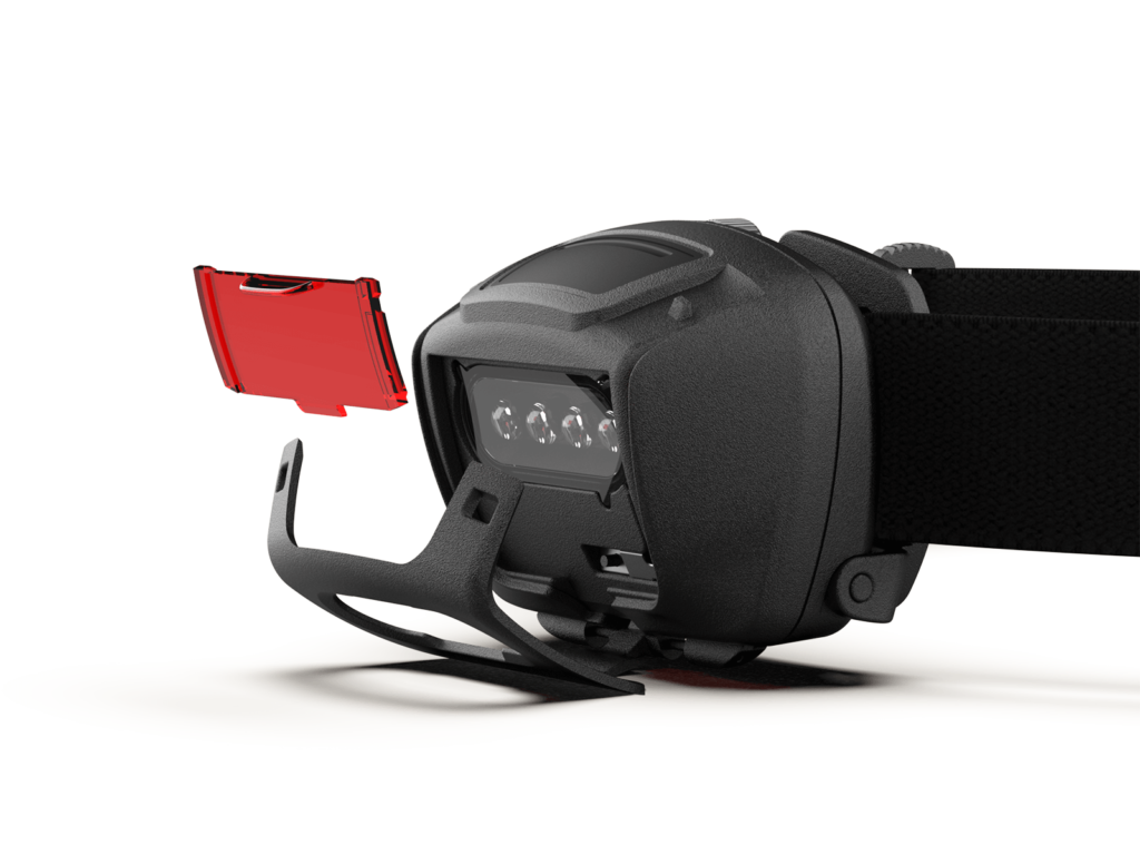 The Quad Tactical also includes an interchangeable lens filter system that allows you to swap between light colors (red, blue and green) depending on your needs at the moment.  If you work with one color light in particular, leave that filter installed and flick it up or down to toggle between that specialty light color and your white beam.