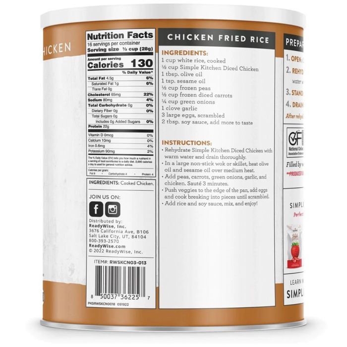 READYWISE SIMPLE KITCHEN FD DICED CHICKEN - 16 SERVING CAN READYWISE SIMPLE KITCHEN FD DICED CHICKEN - 16 SERVING CAN