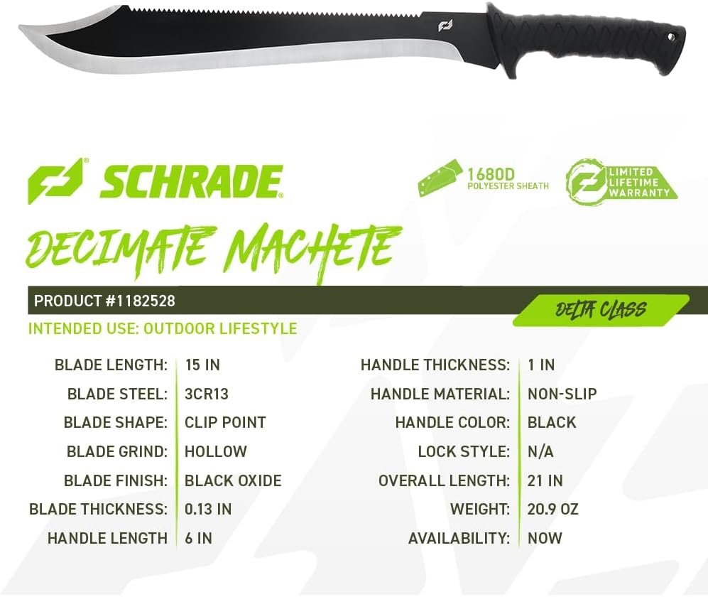 Schrade Decimate Machete – 14.9” 3Cr13 Steel Blade with Rubberized Overmold Handle Schrade Decimate Machete – 14.9” 3Cr13 Steel Blade with Rubberized Overmold Handle Schrade Decimate Machete – 14.9” 3Cr13 Steel Blade with Rubberized Overmold Handle Schrade Decimate Machete – 14.9” 3Cr13 Steel Blade with Rubberized Overmold Handle Schrade Decimate Machete – 14.9” 3Cr13 Steel Blade with Rubberized Overmold Handle Schrade Decimate Machete – 14.9” 3Cr13 Steel Blade with Rubberized Overmold Handle