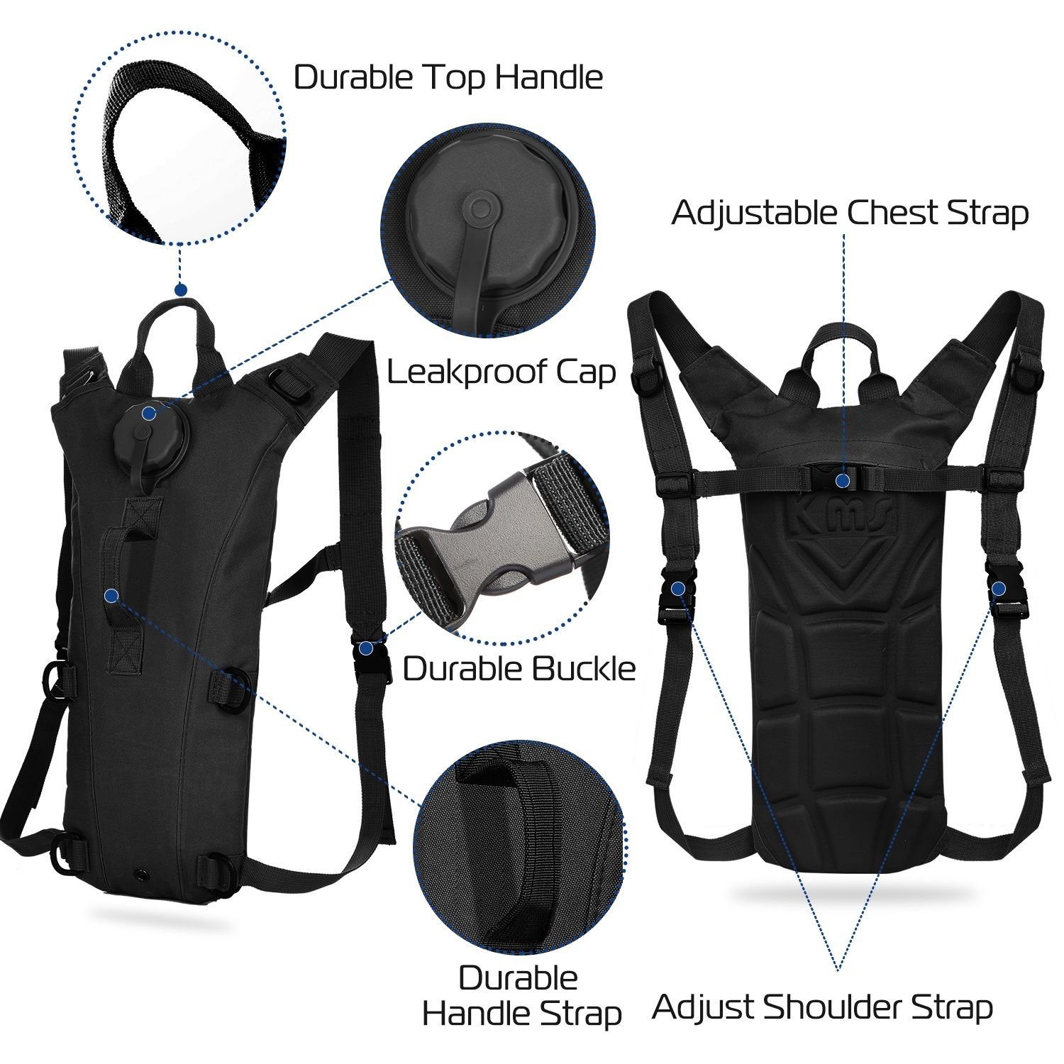 1.Tactical Hydration Pack 3L Water Bladder Adjustable Water Drink Backpack