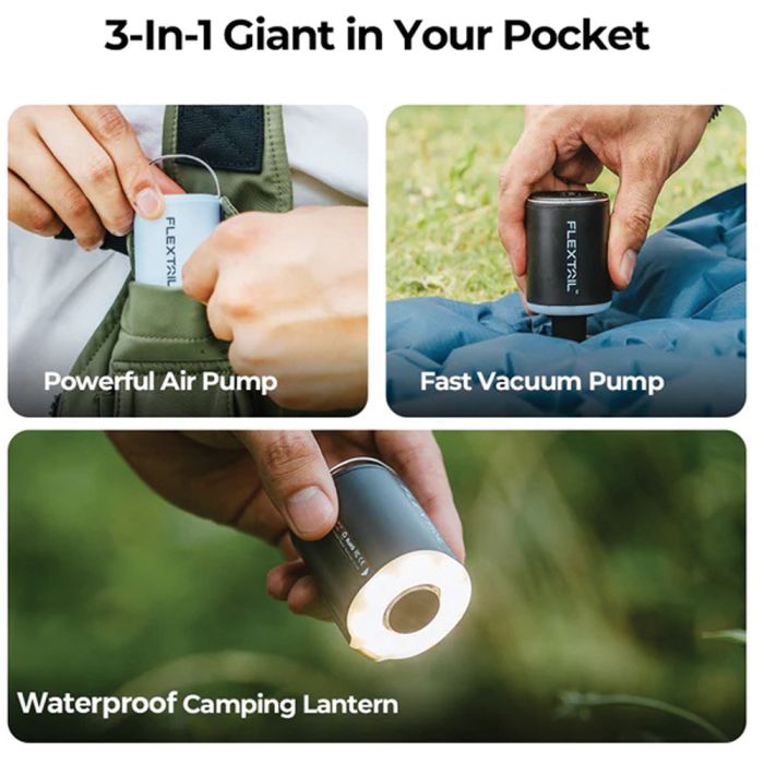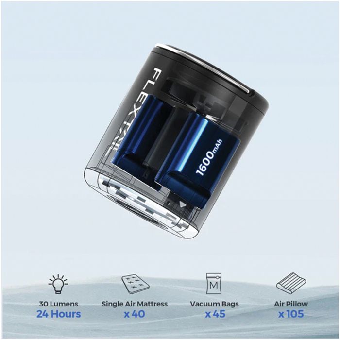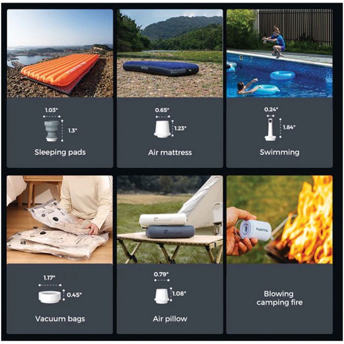 • 【COMPACT BUT MORE POWERFUL THAN EVER】- Weights 3.3oz(only the pump), FLEXTAILGEAR portable air pump TY2X maintains almost the same size as the previous generation, but allows the air pressure to be further enhanced to 4 kPa(0.58 PSI). Able to inflate tens of single camping air mattress, air pillows, or keep the camping lantern on for about 10 hours at 40 lumens in a single charge. (NOT SUITABLE FOR BALLOONS, BASKETBALLS OR TIRES!)