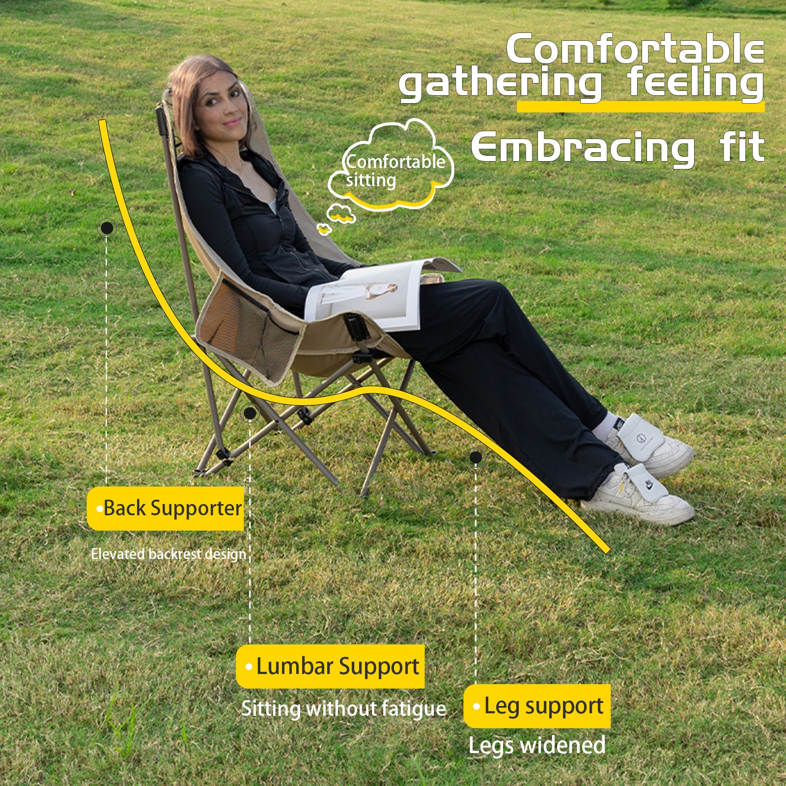 • Heavy-Duty Moon Chair: Constructed with double-layer Oxford fabric and a high-strength, thickened aluminum alloy frame, this robust portable camping chair boasts a remarkable load capacity of up to 330 pounds.