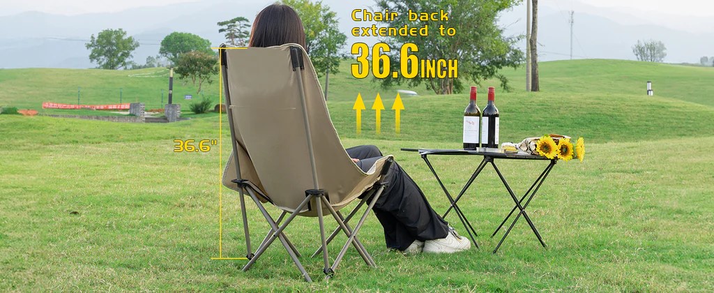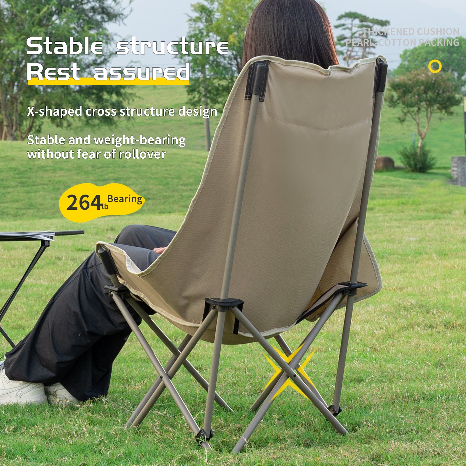 • Heavy-Duty Moon Chair: Constructed with double-layer Oxford fabric and a high-strength, thickened aluminum alloy frame, this robust portable camping chair boasts a remarkable load capacity of up to 330 pounds.