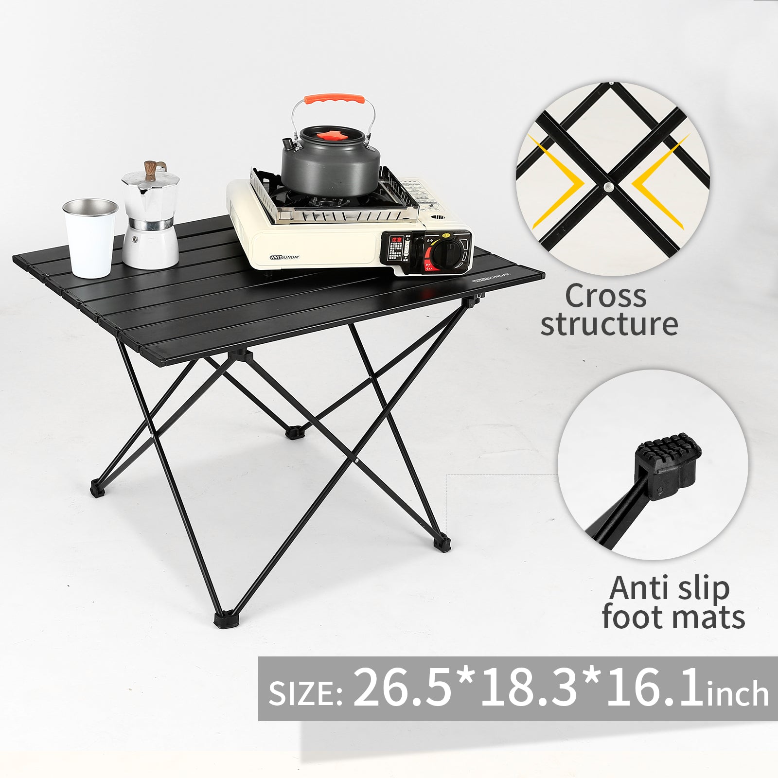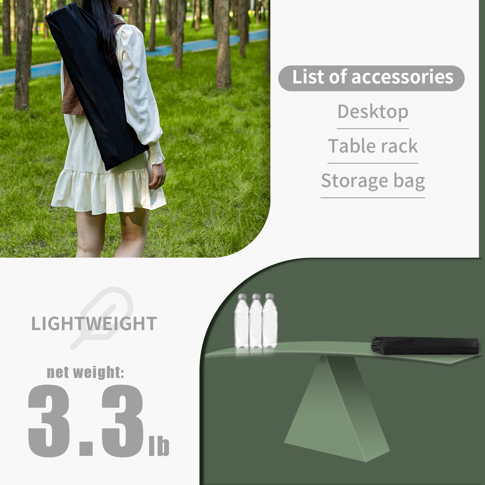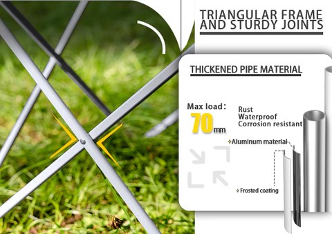 Sturdy and Ultralight: Crafted from aerospace-grade aluminum alloy, weighing only 2.6/3.3 pounds, with a maximum load capacity of 66 pounds. The table legs are designed to remain stable without folding, bending, or detaching, featuring non-slip rubber feet for stability on various terrains.