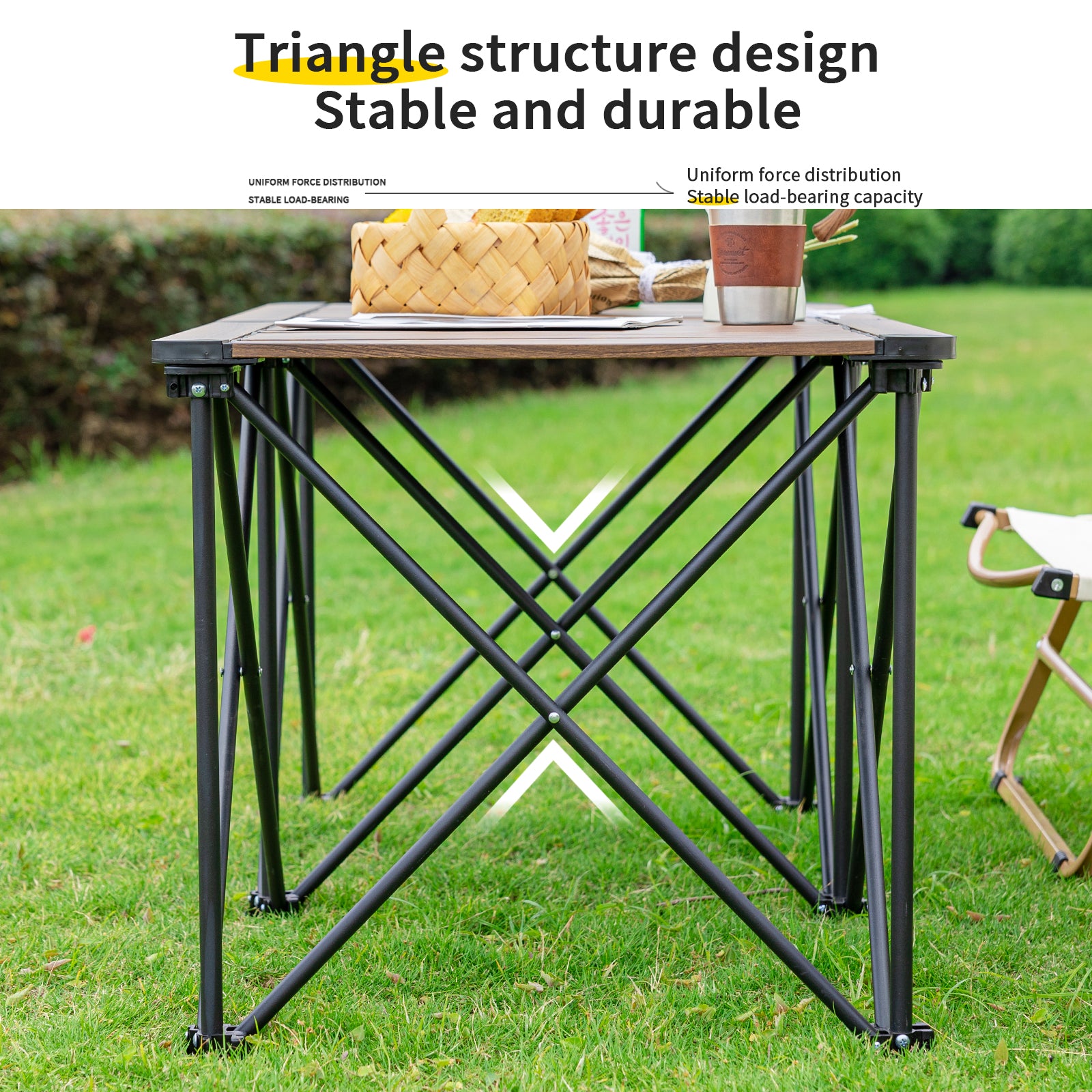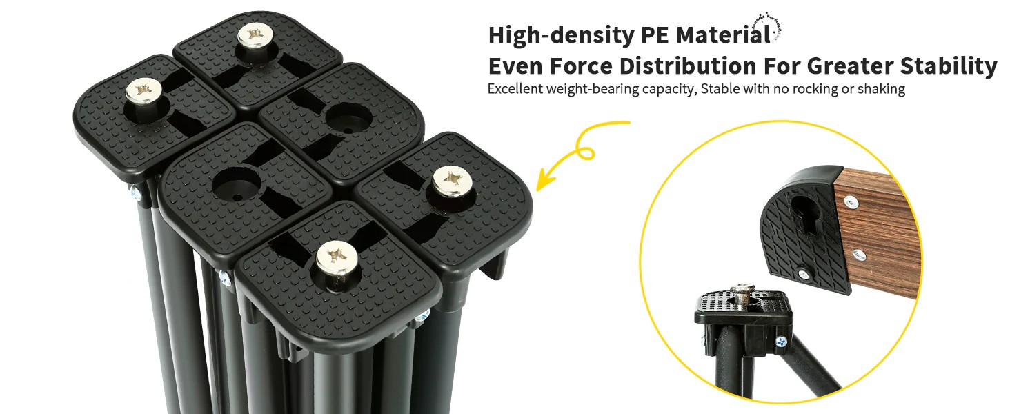 • Anti-slip Bottom Pads for Enhanced Stability: The table legs are equipped with anti-slip bottom pads, providing additional friction to prevent the table from sliding on uneven surfaces. This feature significantly enhances the stability of the table during use.