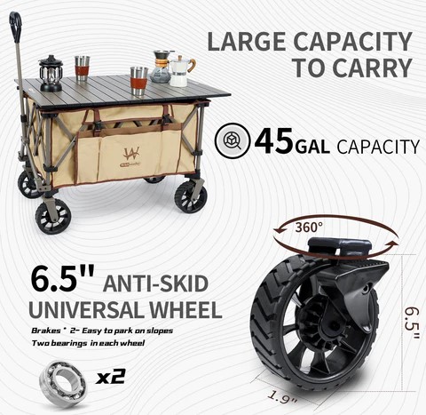 • EASY TO FOLD AND UNFOLD - Folding and unfolding only take seconds with just a push or pull. The wagon is also able to stand upright even when folded.
