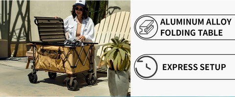Whitsunday Moko Compact Folding Wagon Cart with Aluminum Table Plate