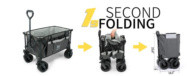 Collapsible Folding Wagon: Whitsunday collapsible wagon no assembly required. With an internal pull rope design, the folding wagon cart can be folded effortlessly in one step, saving time and space. When unfolded, the wagon measures 39.1(L)" x 18.8(W)" x 37(H)". When folded, it measures approximately 14.1(L)" x 9(W)" x 23.6(H)", making it easy to carry.