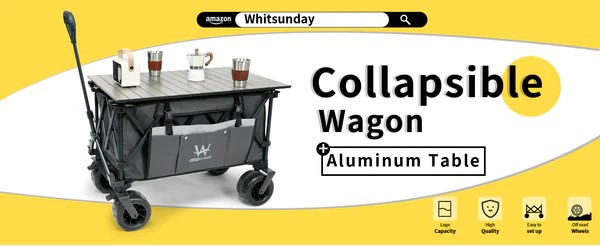Outdoor Wagon Heavy Duty: Whitsunday collapsible wagon features a sturdy and durable frame construction, effortlessly handling heavy loads. The spacious interior provides ample storage capacity. The foldable wagon canopy is made of durable 600D double-layer oxford cloth, resistant to tearing from sharp objects. It is detachable and easy to clean, making it a must-have for everyday use and outdoor adventures.