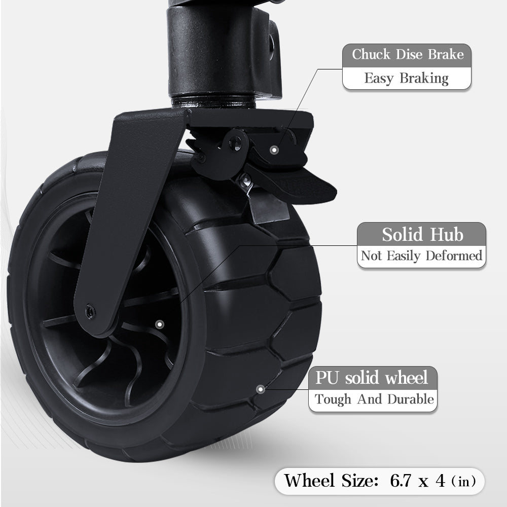 All-terrain wheels: All-terrain big wheels with brakes allow for smooth pulling on sand and beaches, and the brakes enable it to stop on a slope at any time.