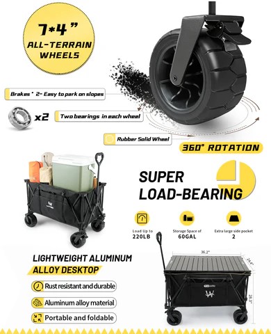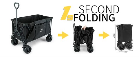 • EASY TO FOLD AND UNFOLD - Folding and unfolding only take seconds with just a push or pull. The wagon is also able to stand upright even when folded.