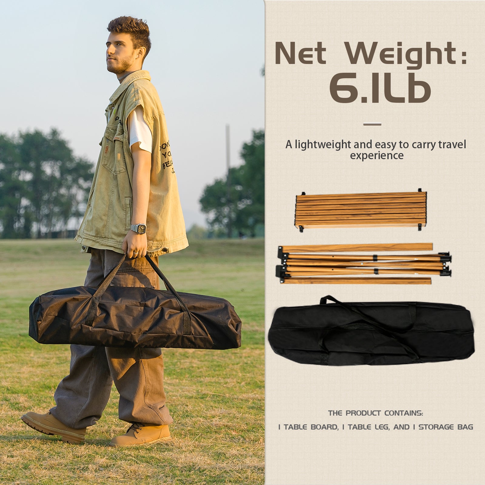 • Compact Storage for Convenience: When folded, the table becomes compact, easily storable in a backpack or the trunk of a vehicle. The space-saving design grants you greater freedom during outdoor activities, unrestricted by space limitations.